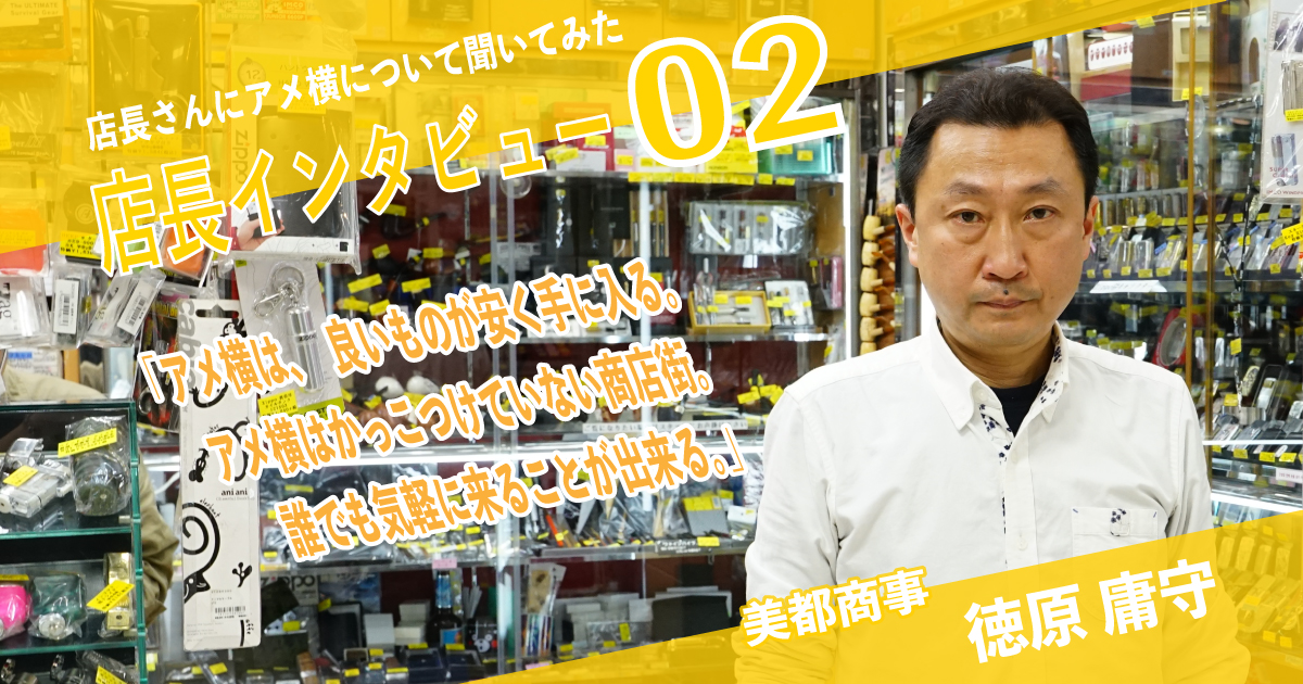 普段からアメ横を注意深く見ている店長さんにアメ横について聞く「店長インタビュー in AMEYOKO」。第2弾は、ZIPPO・喫煙具・筆記具を専門的に取り扱う1964年創業のアメ横老舗店舗「美都商事」の店長徳原さん! 徳原 庸守(株式会社 美都商事 代表取締役) 高校生の時から父親のお手伝いをしていた。2000年から美都商事に就職。その後、父親のあとを継ぎ代表取締役に就任。アメ横歴約30年。趣味は、渓流釣り。 「アメ横は、良いものが安く手に入る。アメ横はかっこつけていない商店街。誰でも気軽に来ることが出来る。」 数十年を経て変化したアメ横 昔と比べて今のアメ横は、業種が大きく変わった感じがする。以前は魚屋、輸入物・化粧品・革製品を取り扱うお店が多かった。同業である輸入雑貨の店舗は昔も多かったが、現在では大分減ってしまった。近年では海外のお客さんが増えていることもありグローバルな飲食店が増えてきていると感じる。外観でいうと昔も通りの屋台はあったが、現在のように屋台で買ったものをその場で飲食する風習はなかった。現在の食事スペースに